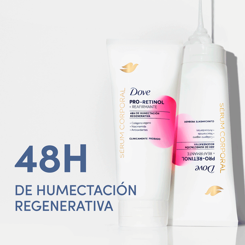 El Sérum Corporal Dove Pro-Retinol está diseñado para restaurar la firmeza y elasticidad natural de la piel en solo 2 semanas.