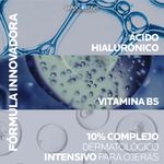 Su fórmula avanzada combina ácido hialurónico, vitamina B5 y un complejo intensivo para reducir ojeras.