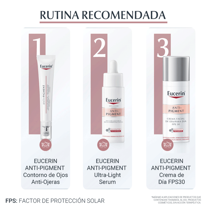 Para obtener los mejores resultados, aplicar el Serum Facial Anti-Pigment Ultra-Light de Eucerin dos veces al día, por la mañana y por la noche, sobre el rostro limpio y seco.