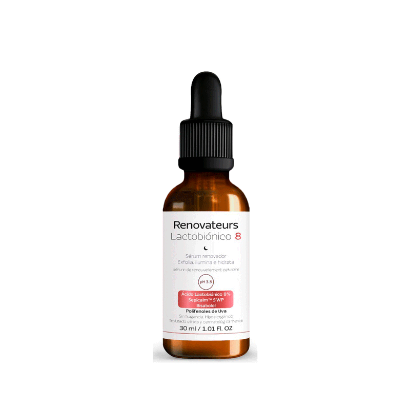 El Sérum Renovateurs Lactobiónico de Cépage formulado con un 8% de ácido lactobiónico, es ideal para pieles sensibles gracias a su alta tolerancia y su acción renovadora y calmante.