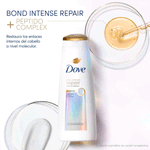 El Shampoo Dove Bond Intense Repair está formulado para la reparación profunda de cabellos dañados, especialmente aquellos sometidos a procesos de decoloración.