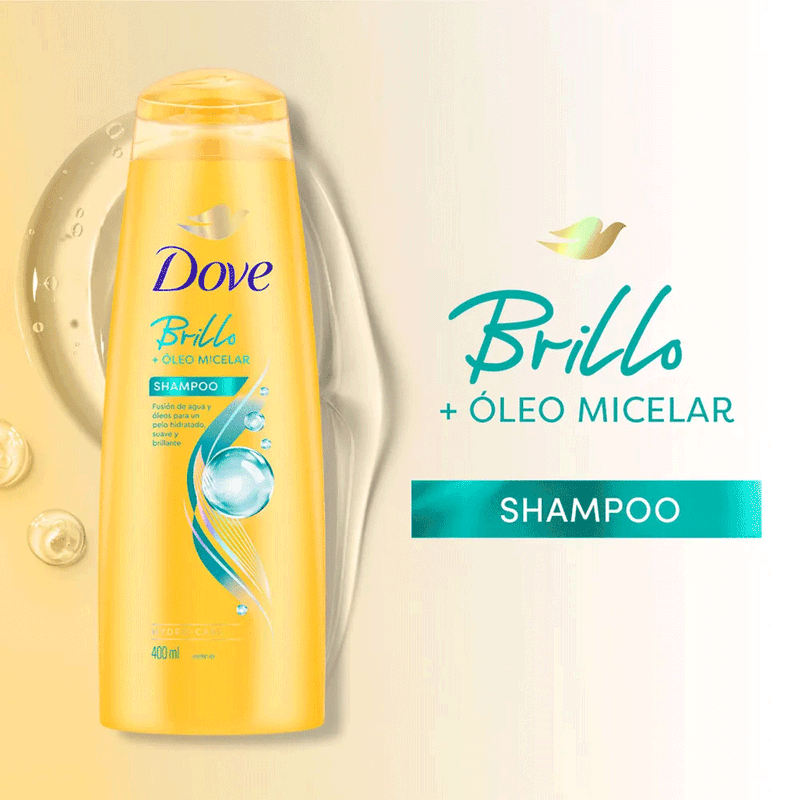 El Shampoo Dove Brillo + Óleo Micelar está diseñado para tratar el cabello seco y con frizz, suavizando el pelo áspero y controlando el frizz de manera efectiva.
