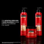 Su fórmula avanzada, enriquecida con keratina, ofrece una acción de blindaje antiestático que protege el cabello contra la humedad y el encrespamiento.