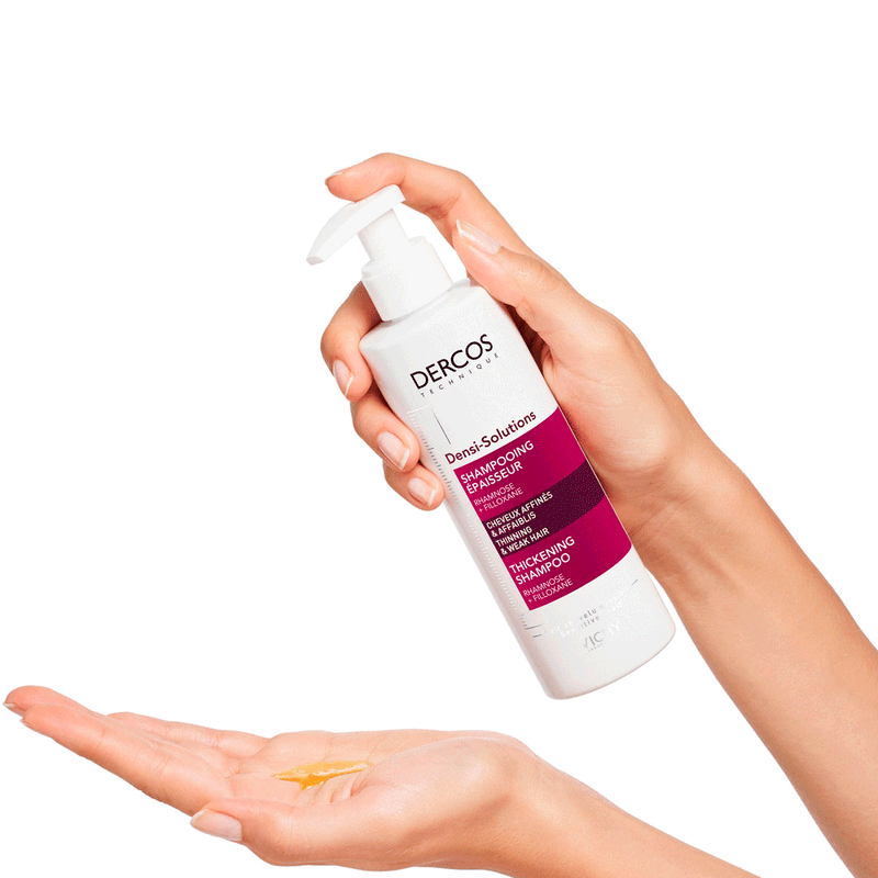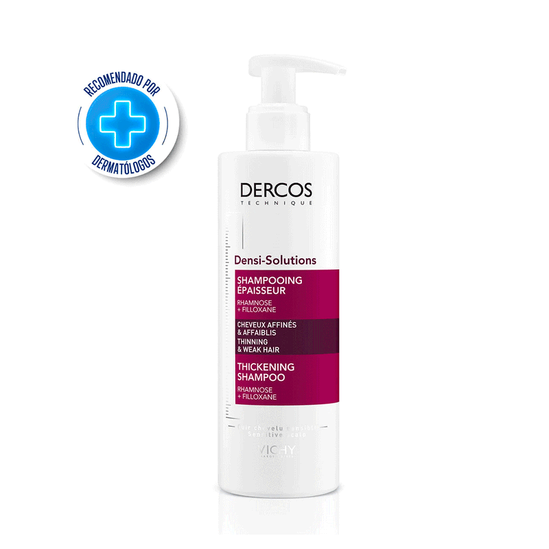 El Shampoo Redensificador Dercos Densi-Solutions de Vichy está formulado para revitalizar y redensificar el cabello desde la raíz, proporcionando un volumen visible y duradero.