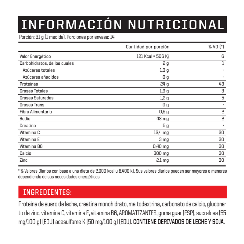 Esta fórmula avanzada combina proteínas de suero de alta calidad con creatina, aminoácidos, vitaminas, minerales y antioxidantes para proporcionar una nutrición completa y equilibrada.