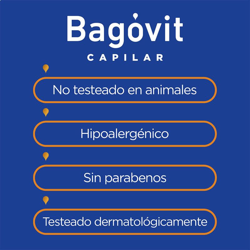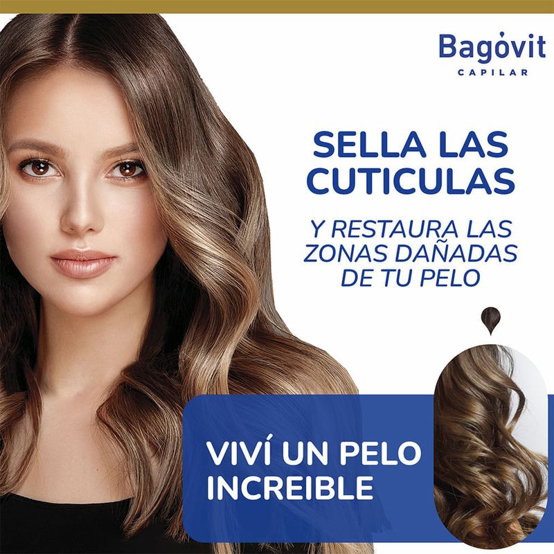 El Tratamiento Capilar Reparación Intensa Bagóvit está formulado para reparar la fibra capilar desde el interior, restaurando la vitalidad y suavidad del cabello dañado. Su fórmula nutre profundamente, reduce la porosidad, mejora la elasticidad y fortalece el cabello, previniendo la rotura y las puntas abiertas. Es ideal para personas que utilizan secador, planchita, coloraciones frecuentes o que presentan signos visibles de daño estructural en el cabello.