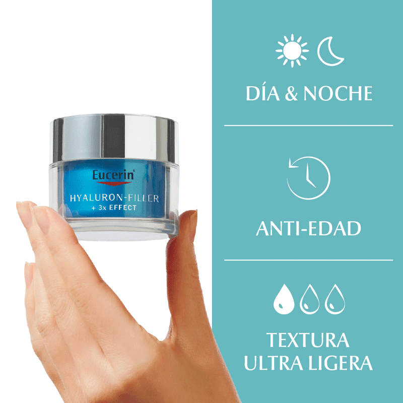 Eucerin Hyaluron-Filler + 3x Effect Hydrating+Repair Ultra-Light Gel Facial es un refuerzo de hidratación diseñado para abordar las primeras líneas de expresión.